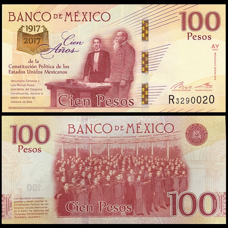 100 pesos Mexico 2017 kỉ niệm 100 năm hiến pháp Mexico