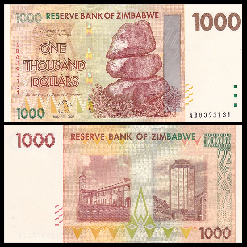 1000 dollars Zimbabwe 2008
