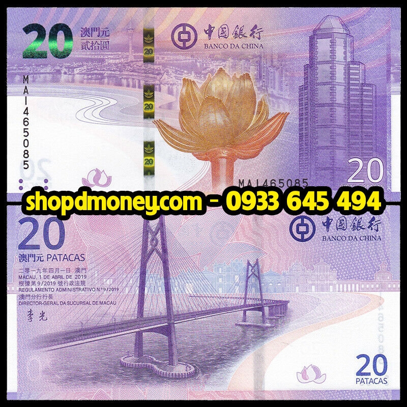 20 patacas Macau 2019 kỷ niệm 20 năm hồi hương Trung Quốc - BOC