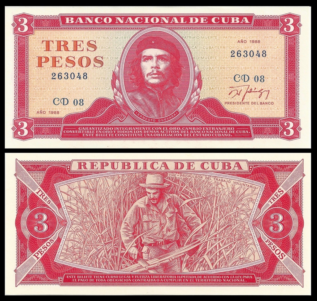 3 pesos Cuba 1988