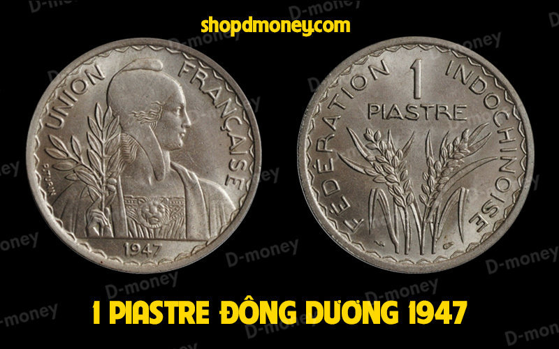 Tiền xu Đông Dương 1947 có kích thước lớn, nặng, được đúc bằng hợp chất nickel - đồng. Nó chỉ được phát hành trong 2 năm 1946 và 1947 để thay thế cho xu bạc trước đó. Xu 1 piastre Union Francaise xuất hiện nhiều vô kể, do nó lớn và nặng nên rất dễ làm nhiều người ảo tưởng là xu hiếm, vì vậy khi mua bán tiền cổ Đông Dương hãy tìm hiểu kĩ. Giá bán đồng tiền Đông Dương 1947 dao động từ 30~100k (2021) tùy theo thời điểm, chất lượng, có thể tăng hoặc giảm.