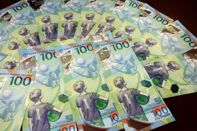 Được biết trong dịp World Cup này, đã có 20 triệu tờ được phát hành, đối tượng nhắm đến là người dân Nga, các cổ động viên - du khách đến từ các nước trên thế giới đổ về nước Nga mua về làm kỉ niệm. Theo như tờ Moscow Times, tiền làm bằng chất liệu polymer, phát hành vào tháng 5/2018 để kỉ niệm lần đầu tiên nước Nga tổ chức sự kiện World Cup.