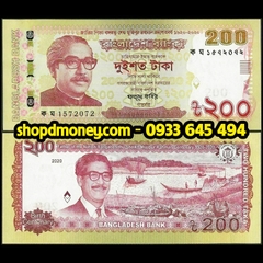 Tờ tiền 200 taka Bangladesh 2020 kỉ niệm 100 năm ngày sinh cha già dân tộc Mujibur Rahman. Phát hành cùng lúc với tờ 100 taka.